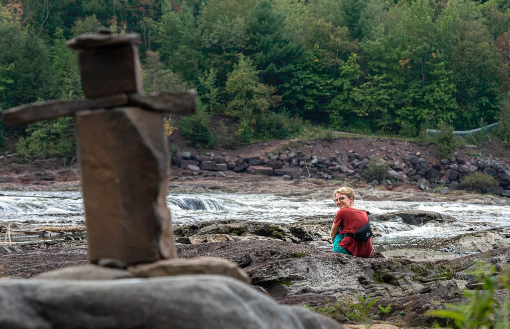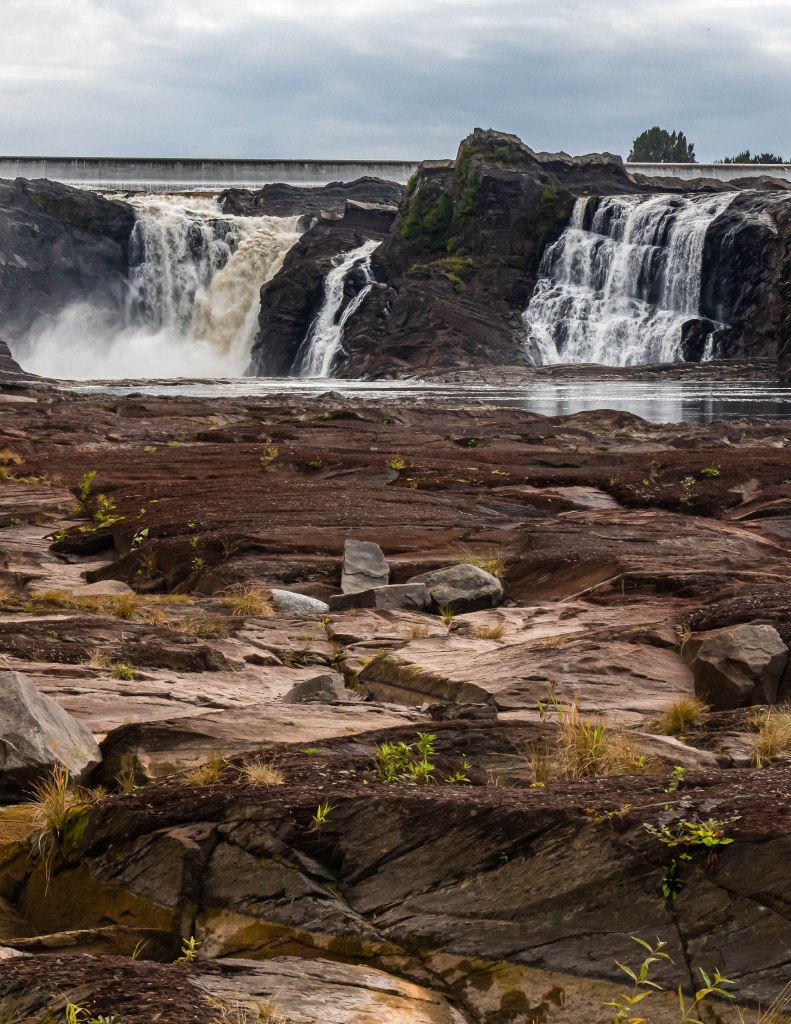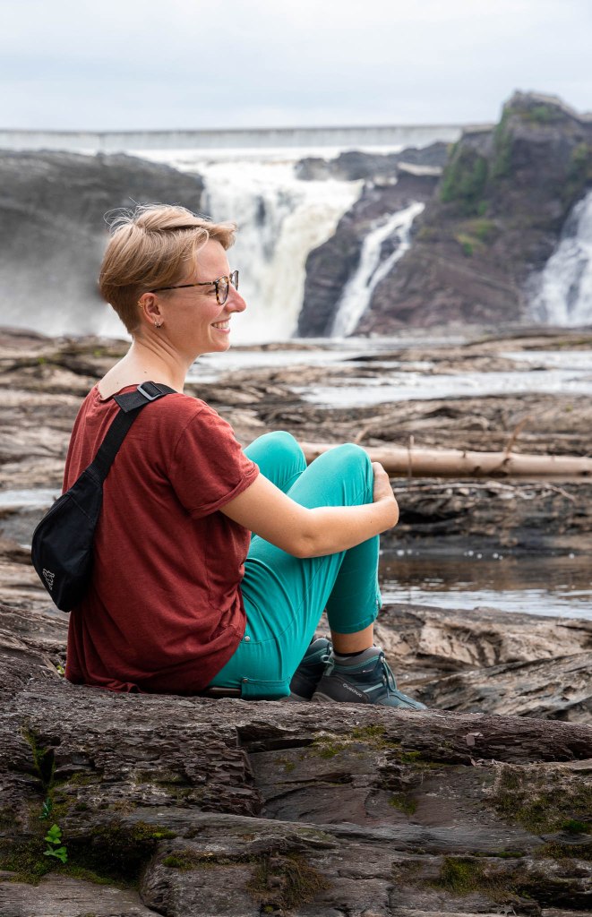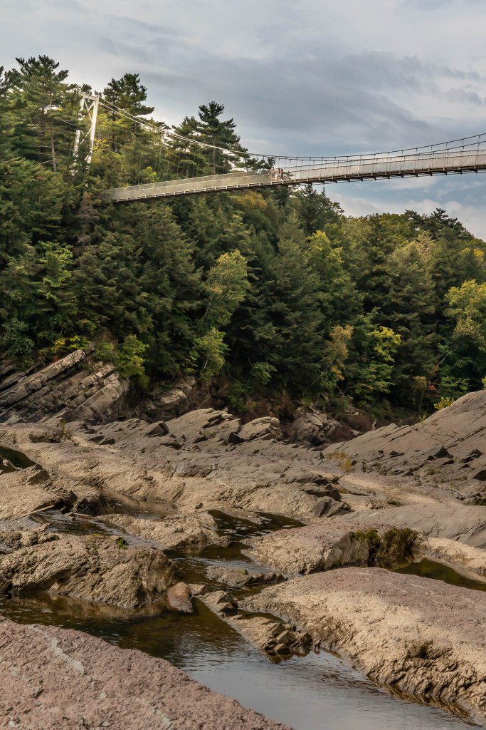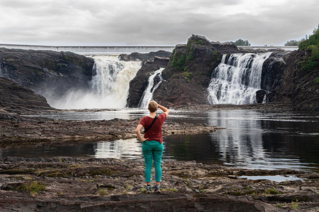 Après avoir vécu moultes péripéties qui lui ont fait respirer le coeur très fort, elle m’a récupérée à Québec pour continuer l’aventure ensemble. Mon mitraillage photographique commence par les chutes de la Chaudière, de l’autre côté du pont vers Lévis (et non pas du pont-levis, tagada tsoin tsoin), souvent bien moins connues mais tout aussi chouettos que leurs cousines Montmorency. Rappelle-toi, on a déjà vu tout ça ici en 2015 avec el Papounetto, diantre pouet.