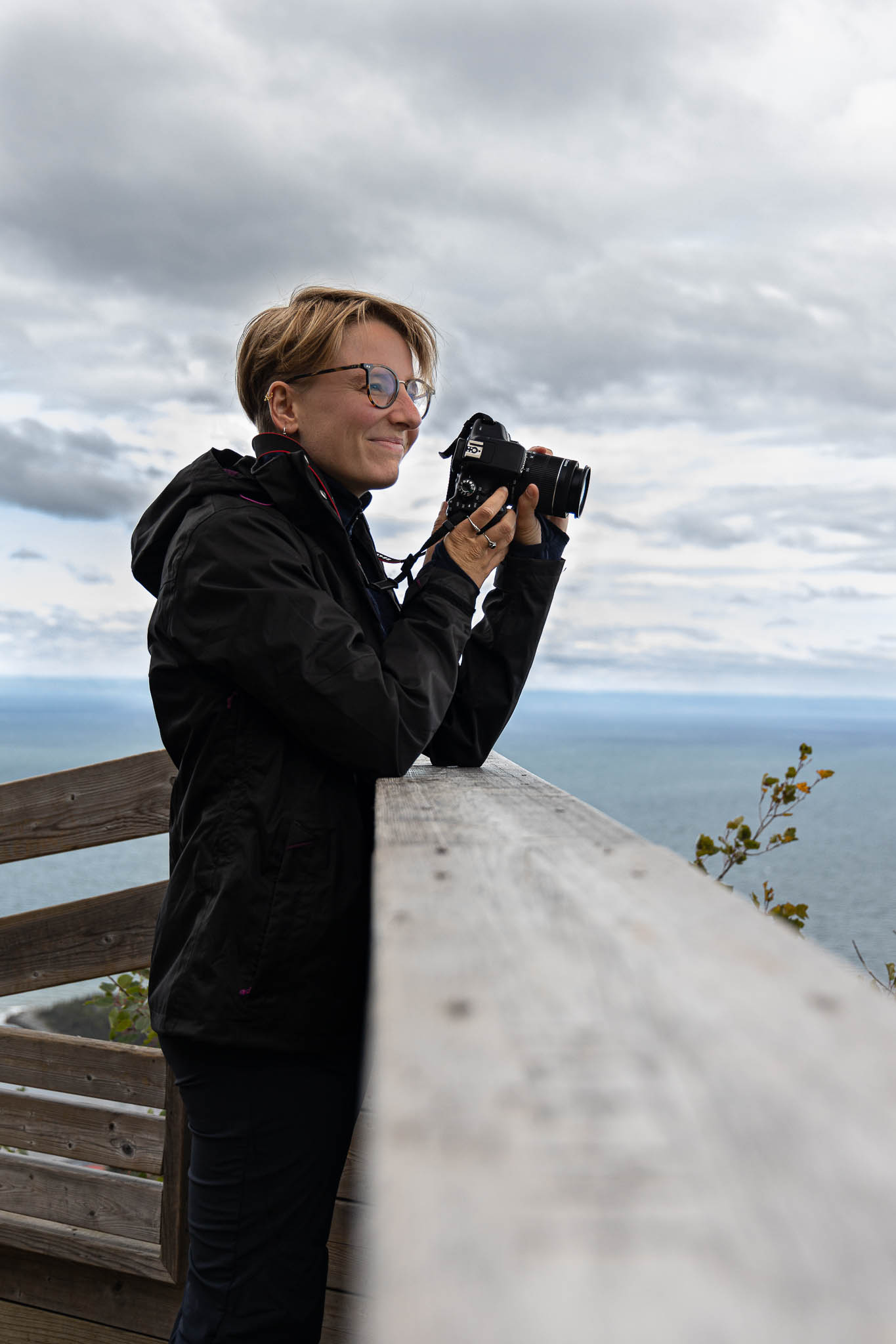 Pic Champlain, grimpette, suduku, toussa, puis départ vers Sainte-Anne-des-Monts, en Gaspésie, où nous avions prévu de…. camper. OUI OUI OUI, Robinson. Mais puisque la pluie semblait prendre un bail à temps plein dans le coin et que les prévisions annonçaient tempête et 4°C, nous avons du nous résoudre à abandonner l’idée. C’est donc sur le parking de Pointe-au-Père (mon dieu que j’aime ce phare) que nous avons troqué nos fantasmes de minimalisme et d’osmose avec la nature pour une chambre avec lit king à Cap-Chat. Spoiler: ce fut une TRÈS bonne idée.