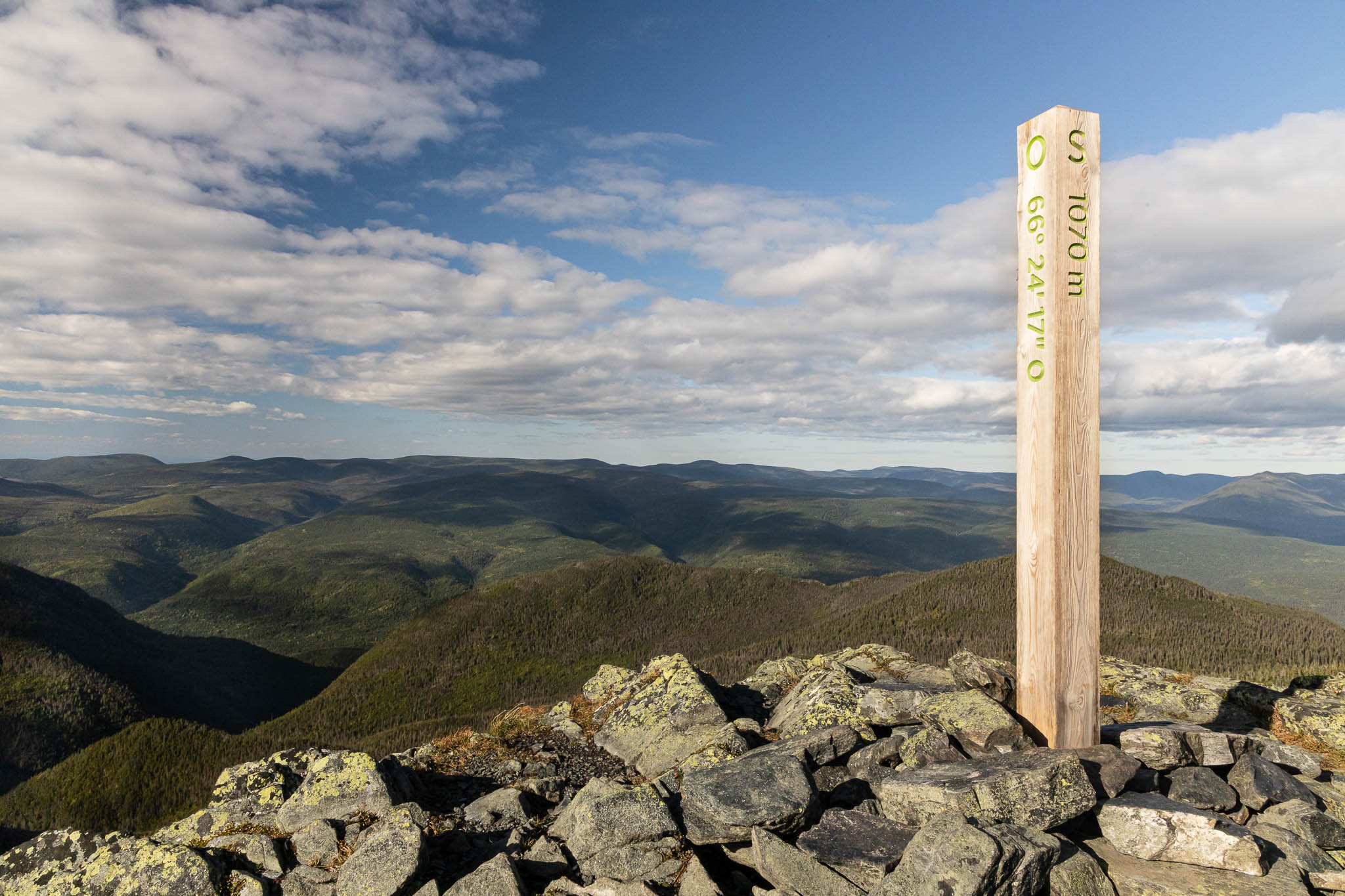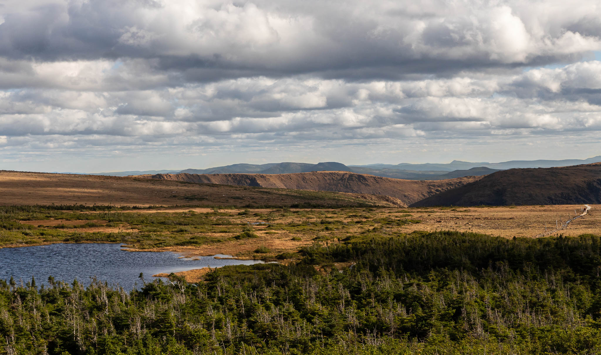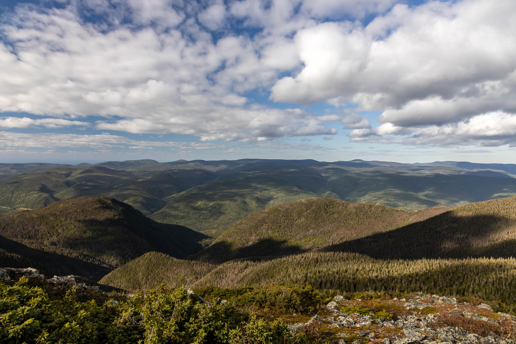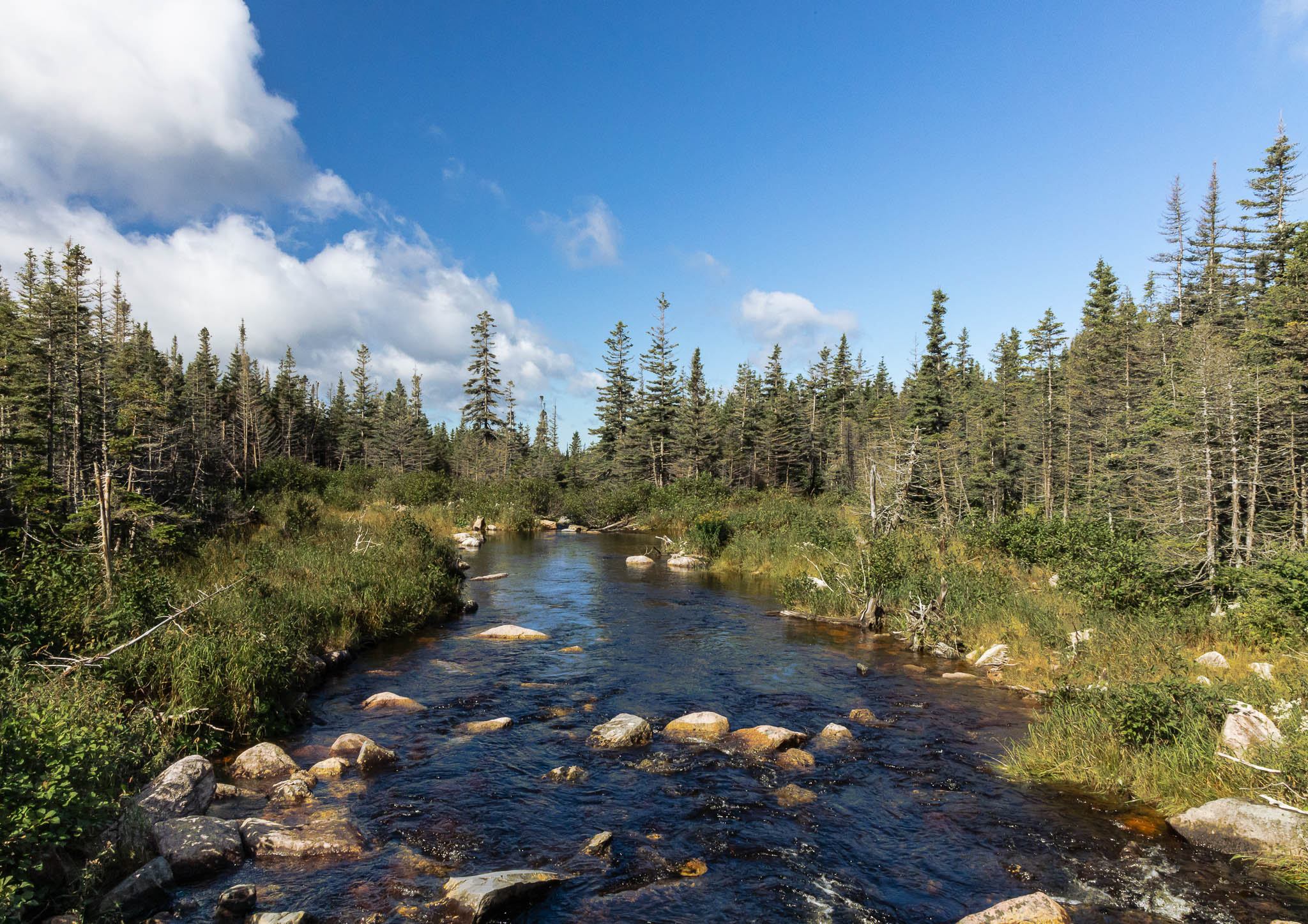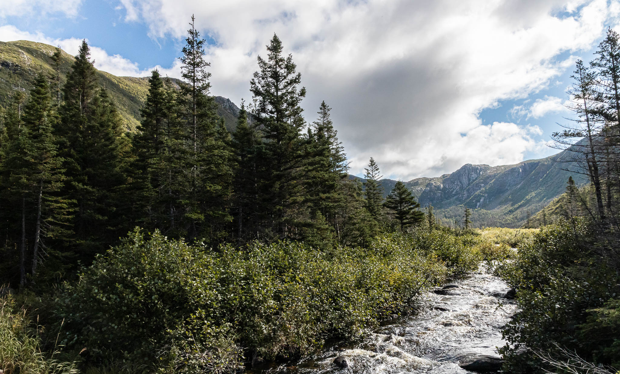 Pour notre dernière journée d’aventure, nous reprenons la route pour le parc de la Gaspésie, en priant très fort Satan et Justin Bridou pour que le beau temps s’installe un tipeu, histoire de donner un répit à nos vêtements-éponges. Et faut croire que Satan et/ou Justin Bridou ont kiffé nos offrandes aux frites, parce que c’est avec un magnifique ciel bleu que nous avons attaqué le Lac aux Américains, puis le bien connu sentier du Mont-Albert. Mais faut pas déconner, on a quand même ramené l’équipement polaire et racheté des gants, parce que c’est un climat de toundra qui nous attend au sommet. Hé oui Monique, on se gèle le fessier n’importe où ici.
