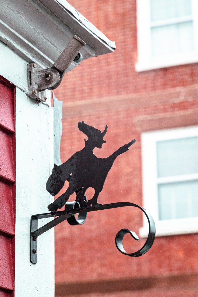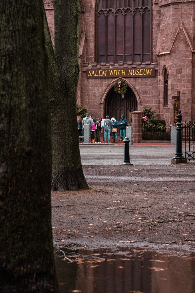 Le lendemain matin, toujours épuisée par la journée imprévue de la veille, je décide donc de me rendre à Salem, à 20min de Saugus, pour passer une journée plus tranquille qu’à Boston. L’arrivée dans cette jolie ville m’a fait beaucoup de bien à l’âme: l’architecture mêle les époques gothique, victorienne, coloniale, et concrètement, c’est magnifique. Malgré la pluie, les touristes étaient au rendez-vous (clairement, ne jamais y mettre les pieds à Halloween, car c’est THE place to be à cette époque), mais la ville se prête très bien au vagabondage photographique. Les habitations sont splendides, la proximité de la rivière et la végétation abondante rendent l’atmosphère très sereine, et les rues commerçantes sont très divertissantes. Evidemment, puisque la ville est tristement connue pour ses procès de sorcellerie de 1692, c’en est devenu un gros business, et les boutiques de sorcellerie, taromancie, et autres Disneylands de la sorcière (musées, visites thématiques, reconstitutions) sont partout.
