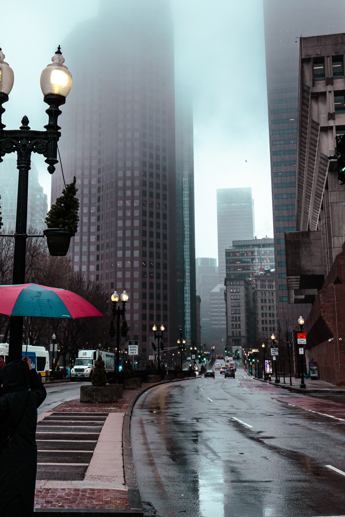 Le lendemain matin, je décide cependant de ne pas perdre de temps pour aller le faire réparer à Saugus, et je file à Boston. Yolo, on verra bien là bas. Arrivée à Boston, il pleut toujours autant, et les stationnements sont blindés et aussi peu clairs que ceux de Montréal. Je décide donc de laisser la voiture dans un parking souterrain pour la journée: la suite du programme se fera à pieds!
